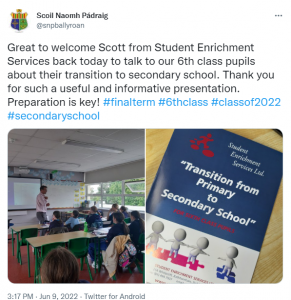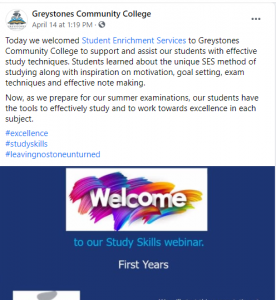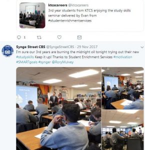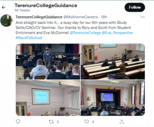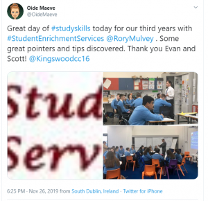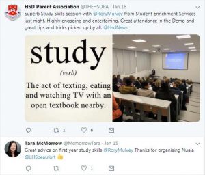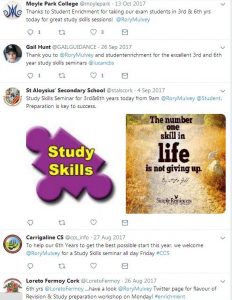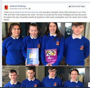 Mary Norris, Portmarknock Community School.“Huge thanks for all the Study Skills sessions at the school so far. We look forward to welcoming the team back again”.