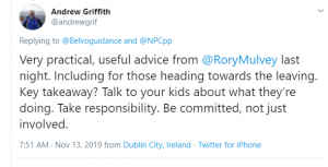“I just want to thank you all for the engaging, informative and extremely useful presentations for both the parents and teachers. I have received numerous emails and messages from both saying how helpful they were, as well as students stopping me on the corridors telling me about what they learned! Thanks for your professional approach and we hope to see you again in the near future”. Niamh Floyd. Crescent College Comprehensive S.J.
